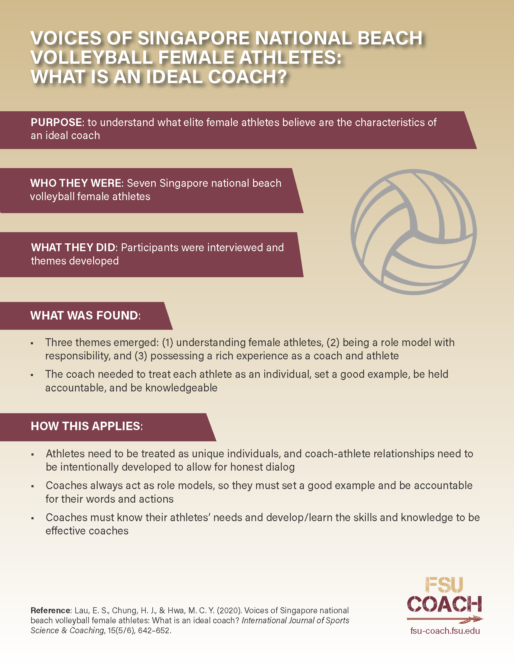 Voices of Singapore National Beach Volleyball Female Athletes: What is an Ideal Coach?